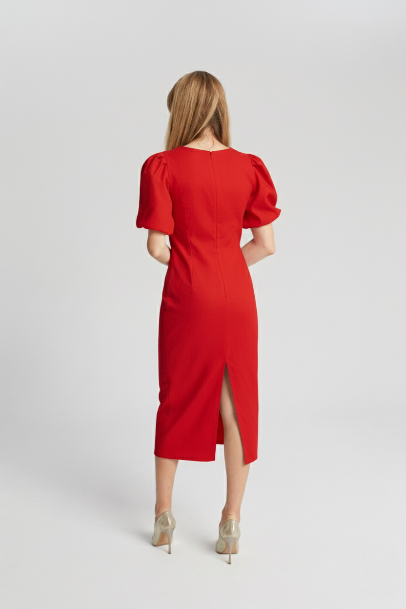 Czerwona sukienka z bufkami Alex