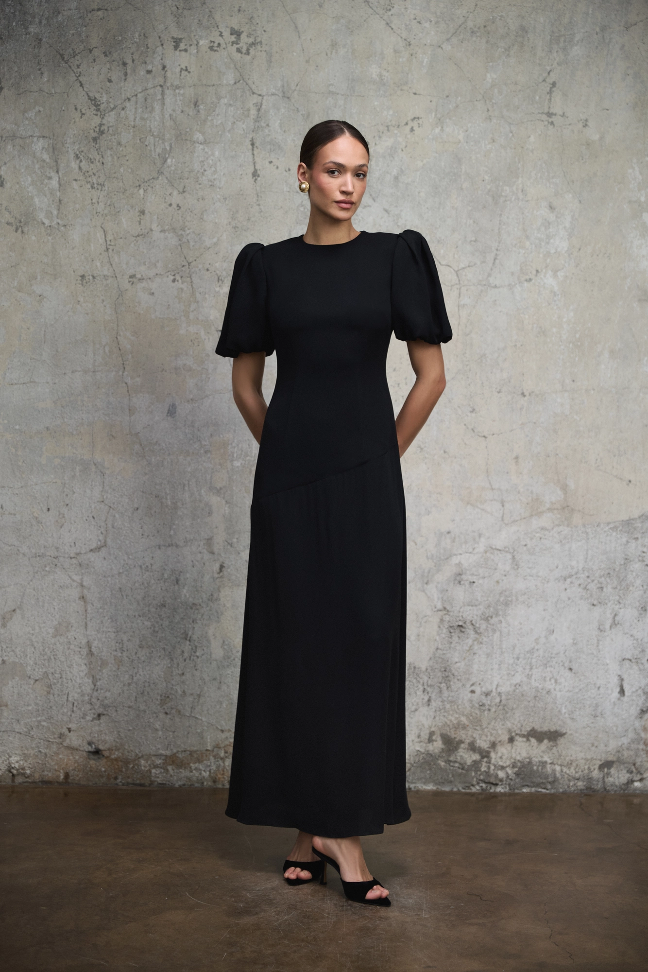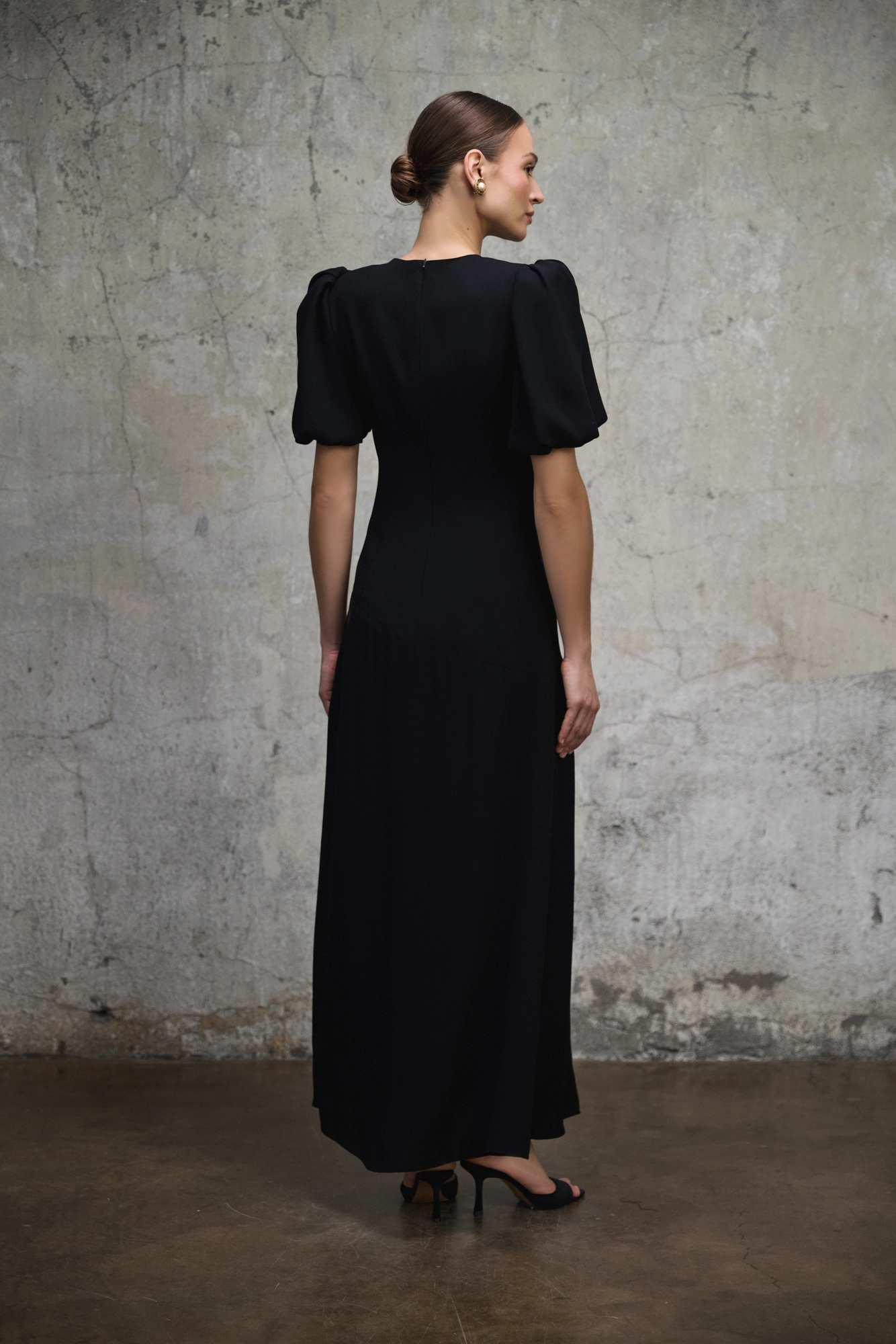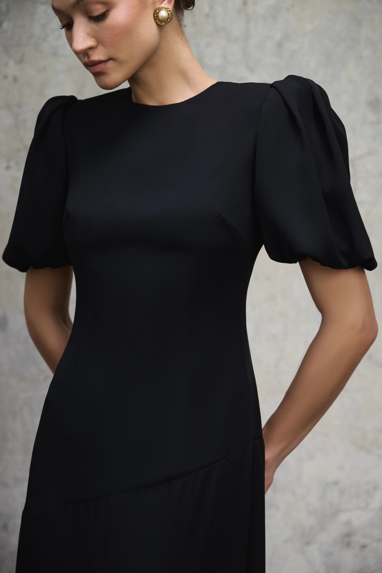 Czarna Sukienka Emily z Poduszkami i Bufkami | Rêver