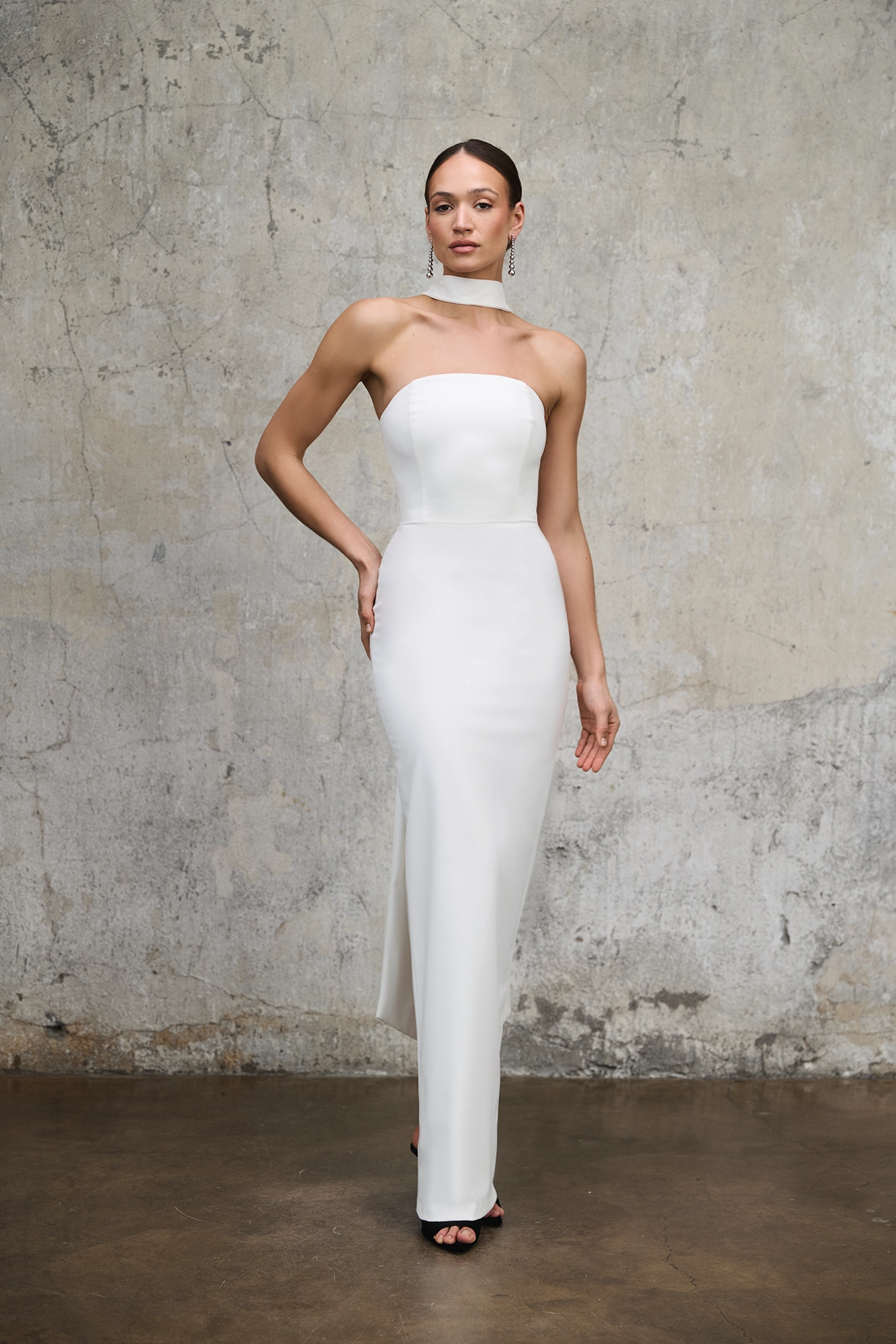 Sukienka Linda to esencja nowoczesnego minimalizmu w eleganckiej, dopracowanej formie. Długa, dopasowana sylwetka w odcieniu śmietankowej bieli podkreśla proporcje i tworzy wyrazisty, a jednocześnie niezwykle czysty obraz.