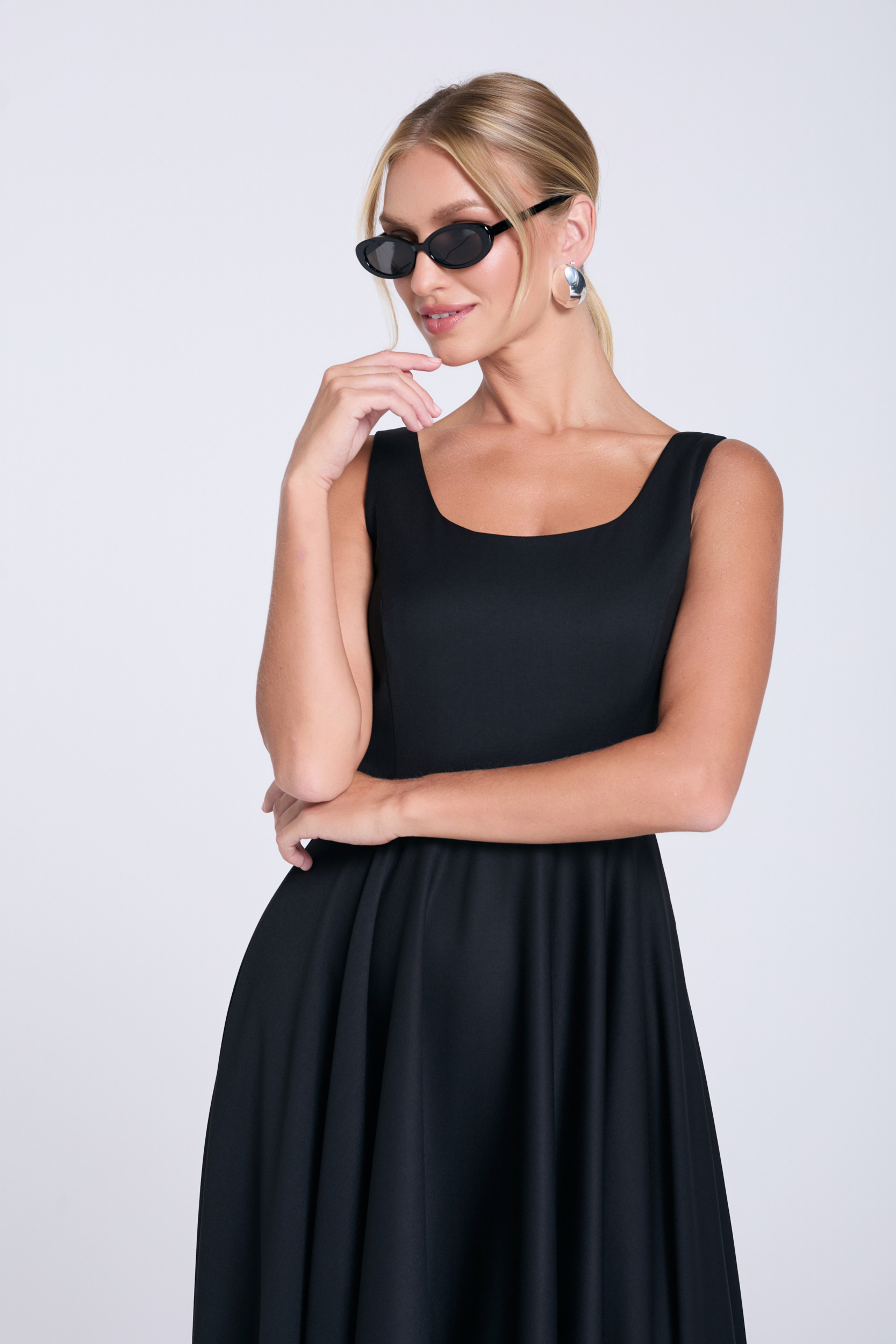 Czarna sukienka mini Agnes, uszyta z miękkiego, komfortowego mikromodalu. Jej dopracowany krój łączy luźną górę z poduszkami na ramionach i rękawem do łokcia oraz kontrastujący, dopasowany dół z marszczeniem, który podkreśla linię bioder. To idealny wybór na wieczorne wyjścia, imprezę lub mniej formalne spotkania, kiedy chcesz wyglądać efektownie, ale z nutą nonszalancji.